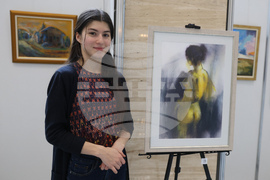 София (22 ноември 2023) В Мраморното фоайе на Народното събрание се открива изложбата „Босилеград в цветове”. Изложбата представя картини на професионални художници от България, Сърбия, Република Северна Македония, Черна гора и Украйна. Творбите са селектирани от трите издания на едноименния художествен пленер в Босилеград от 2021, 2022 и 2023 г. На снимката: депутатът от "ПП - ДБ" Елисавета Белобрадова и председателят на сдружение „ГЛАС“ Александър Димитров (дясно).