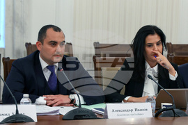 София (22 ноември 2023) Комисията по икономическа политика и иновации провежда заседание в сградата на Народното събрание. На снимката: зам.-председателят на комисията Александър Иванов (ляво).