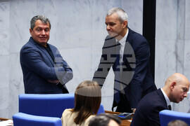 В програмата за работа на Народното събрание е и продължение на второ четене на промени в Закона за защита на растенията, както и първо четене на изменения в Закона за счетоводството. Предвижда се депутатите да обсъдят на първо четене изменения в Закона за акцизите и данъчните складове и в Данъчно-осигурителния процесуален кодекс. Програмата включва и проект на решение за създаване на Временна комисия за защита на правата на психично болните пациенти и изготвяне на законодателни промени, които да ги гарантират. На снимката: депутатите от ПП-ДБ Атанас Атанасов (вляво) и Васил Пандов.