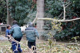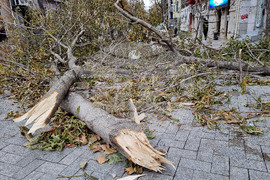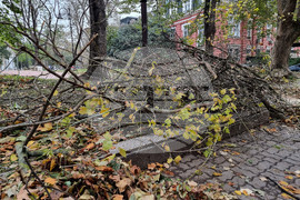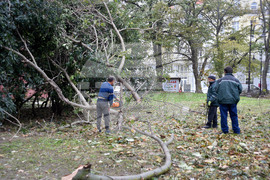 Варна (23 ноември 2023) Продължава почистването на улиците и парковете от паднали дървета и листа, след преминалия преди няколко дена ураган.