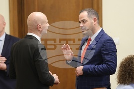 София (23 ноември 2023) В сградата на Министерски съвет се провежда заседание на правителството. На снимката (от ляво надясно): министърът на вътрешните работи Калин Стоянов, министър-председателят Николай Денков.