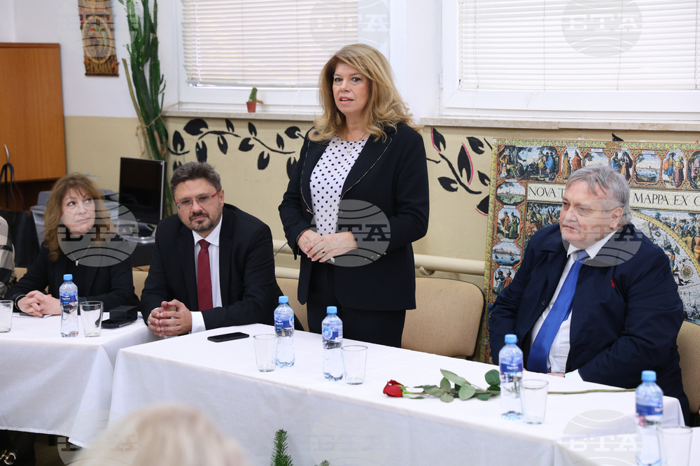 Братислава (24 ноември 2023) Вицепрезидентът е на посещение в Братислава по повод седемдесет и пет годишния юбилей на Българското средно училище „Христо Ботев“. В рамките на посещението вицепрезидентът се срещана с българската общност. Генералният директор на Българската телеграфна агенция ( БТА) Кирил Вълчев Вълчев (дясно) връчи на директора на Българското средно училище „Христо Ботев" Николай Йорданов медала, издаден от Монетния двор на Българската народна банка (БНБ) по повод 125-та годишнина от първите новини на БТА.