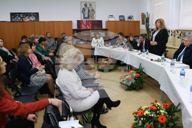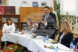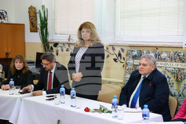 Братислава (24 ноември 2023) Вицепрезидентът е на посещение в Братислава по повод седемдесет и пет годишния юбилей на Българското средно училище „Христо Ботев“. В рамките на посещението вицепрезидентът се срещана с българската общност. На снимката: председателят на Синдиката на българските учители (СБУ) Янка Такева и директора на Българското средно училище „Христо Ботев" Николай Йорданов.