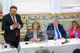 Братислава (24 ноември 2023) Вицепрезидентът Илияна Йотова е на посещение в Братислава по повод седемдесет и пет годишния юбилей на Българското средно училище „Христо Ботев“. В рамките на посещението вицепрезидентът се срещана с българската общност. На събитието присъстват генералният директор на Българската телеграфна агенция (БТА) Кирил Вълчев (втори отляво) и посланикът на България в Словакия Васил Петков (дясно).
