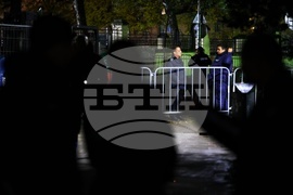 София (24 ноември 2023) Гражданско движение "БОЕЦ" провежда протест пред Министерството на вътрешните работи с искане за оставка на вътрешния министър. Демонстрацията е под наслов „Стоп на полицейското насилие”. На снимката: служители на МВР охраняват сградата на Министерството.