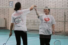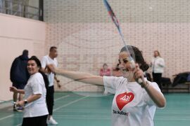София (26 ноември 2023) Национални спортни игри за трансплантирани „Да! За живот!“ се провеждат в НСА. На снимката: Участници се състезават в игра по бадминтон.