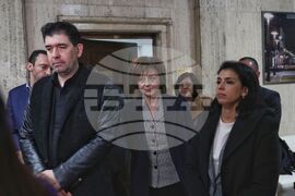 София (26 ноември 2023) В сградата на Столична община се провеждат разговори между общинските съветници от групата на местна коалиция „БСП за България“ и местна коалиция „Продължаваме промяната - Демократична България (Спаси София)“ за постигане на съгласие по конкретни политики и приоритети за управлението на София в мандат 2023-2027 г. На снимката: общинските съветници „БСП за България" Иван Таков, Диана Тонова и Ваня Григорова пристигат за срещата..