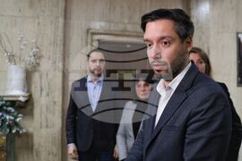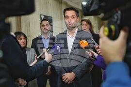 София (26 ноември 2023) В сградата на Столична община се провеждат разговори между общинските съветници от групата на местна коалиция „БСП за България“ и местна коалиция „Продължаваме промяната - Демократична България (Спаси София)“ за постигане на съгласие по конкретни политики и приоритети за управлението на София в мандат 2023-2027 г. След срещата общинските съветници отговориха на въпроси на журналистите. На снимката: общинският съветник от „Продължаваме промяната - Демократична България" („Спаси София") Борис Бонев.
