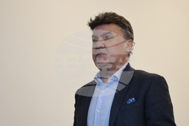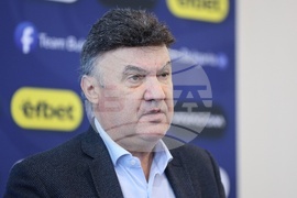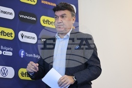 София (27 ноември 2023) В Националната футболна база "Бояна" се проведе заседание на изпълнителния комитет на Българския футболен съюз. След края на заседанието се провежда брифинг. На снимката: президентът на Български футболен съюз Борислав Михайлов.