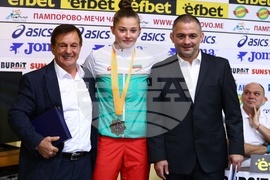 София (28 ноември 2023) В пресклуб България се провежда пресконференция на българската федерация по Самбо. На снимката: Анна-Мария Манушева (в средата), световният шампион в категория до 79 килограма на Световното първенство по самбо в Ереван (Армения) Иван Хърков (в дясно, на първи ред)