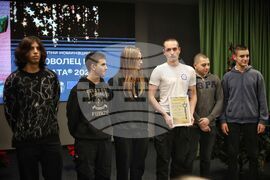 Бургас (4 декември 2023) Фондация "Астика" провежда официалната церемония по обявяване на националните призове "Доброволец на годината" за 2023 г. Събитието се провежда в навечерието на международния ден на доброволеца. Домакин е Център за съвременно изкуство и библиотека Бургас. На снимката: грамота за доброволчески принос получават Клуб "Театър" от Професионална гимназия по механоелектротехника и електроника Бургас.