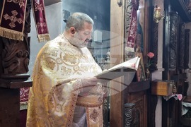 Благоевград (6 декември 2023) Църквата „Свети Николай“ в Благоевград посреща днес храмовия си празник. В утрото на днешния ден празникът започна с богослужение и света литургия. На снимката: председателят на храма отец Светослав Кючуков.