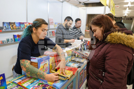 София (6 декември 2023) Юбилейното 50-о издание на Международния панаир на книгата. В продължение на шест дни над 170 издателства представят своите най-нови и популярни издания за деца и възрастни, а посетителите могат да избират сред повече от 100 000 заглавия, съобщават организаторите от асоциация „Българска книга“ (АБК). На снимката: щанда на „Vision Books", Среща с автограф с Дарина Шопова-Станчева (дясно) (автор) и Петя Евлогиева (ляво) (илюстратор), създатели на детската книга „Звездалан и приключението с вулкана Там“. Книгата разказва историята на мъничкия лилав вълшебник Звездалан, който живее в лампите на детските стаи. Всяка вечер, щом лампата угасне, той се буди, за да зареди небето със звезди, създадени от детските усмивки. Но идва ден, в който звездите започват да изчезват.