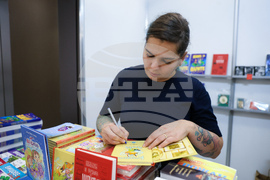 София (6 декември 2023) Юбилейното 50-о издание на Международния панаир на книгата. В продължение на шест дни над 170 издателства представят своите най-нови и популярни издания за деца и възрастни, а посетителите могат да избират сред повече от 100 000 заглавия, съобщават организаторите от асоциация „Българска книга“ (АБК). На снимката: щанда на „Vision Books", Среща с автограф с Дарина Шопова-Станчева (автор) и Петя Евлогиева (на снимката) (илюстратор), създатели на детската книга „Звездалан и приключението с вулкана Там“. Книгата разказва историята на мъничкия лилав вълшебник Звездалан, който живее в лампите на детските стаи. Всяка вечер, щом лампата угасне, той се буди, за да зареди небето със звезди, създадени от детските усмивки. Но идва ден, в който звездите започват да изчезват.