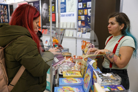 София (10 декември 2023) Юбилейното 50-о издание на Международния панаир на книгата се провежда в Националния дворец на културата (НДК). Над 170 издателства представят своите най-нови и популярни издания за деца и възрастни, а посетителите могат да избират сред повече от 100 000 заглавия. На снимката: среща с автограф с илюстратора Петя Евлогиева, на щанда на Vision Books.