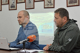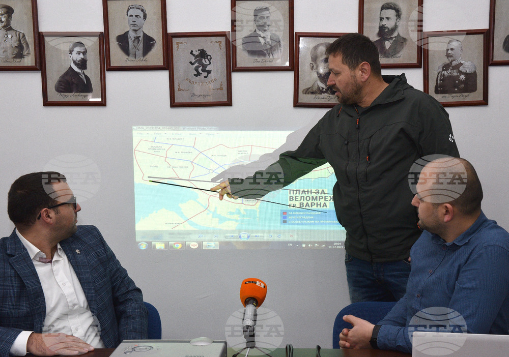 Варна (11 декември 2023) Общински съветници от "Възраждане" дадоха пресконференция на тема "Развитие на веломрежата в града". На снимката (от ляво надясно): Юлиан Губатов и Евгени Баев - представител на велоклуб "Спартак".