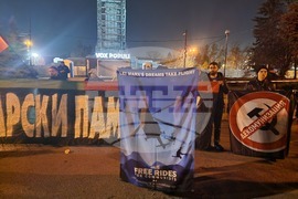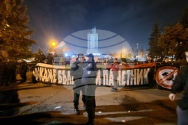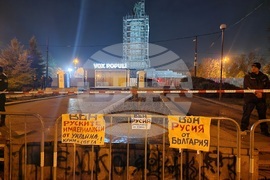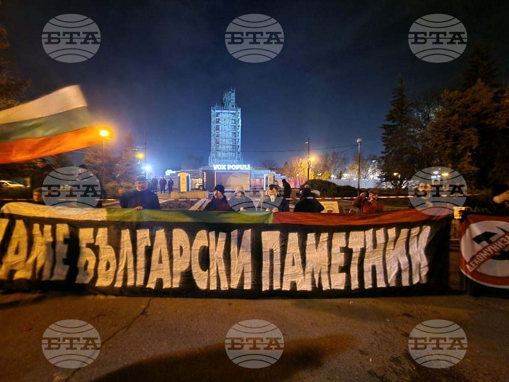 София (12 декември 2023) Мирна демонстрация в подкрепа премахването на Паметника на Съветската армия се провежда пред монумента в София.