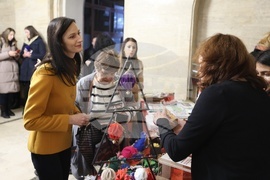 София (13 декември 2023) Коледен базар на каузите организират от Министерството на труда и социалната политика (МТСП). Събитието се провежда във фоайето на министерството откъм. В базара участват 12 неправителствени организации, всяка със своя кауза. Целите са различни: помощ за майки на деца с увреждания, които да могат да работят и да издържат децата си, помощ за хора с увреден слух, които да могат да се реализират и да си намерят работа, помощ за реинтегриране и намаляване на броя на изоставените деца у нас, възможност на хора от уязвими групи да открият и реализират своите таланти и други. На снимката: министърът на труда и социалната политика Иванка Шалапатова (в средата).