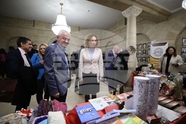 София (13 декември 2023) Коледен базар на каузите организират от Министерството на труда и социалната политика (МТСП). Събитието се провежда във фоайето на министерството откъм. В базара участват 12 неправителствени организации, всяка със своя кауза. Целите са различни: помощ за майки на деца с увреждания, които да могат да работят и да издържат децата си, помощ за хора с увреден слух, които да могат да се реализират и да си намерят работа, помощ за реинтегриране и намаляване на броя на изоставените деца у нас, възможност на хора от уязвими групи да открият и реализират своите таланти и други. На снимката: вицепремиерът и министър на външните работи Мария Габриел (ляво),