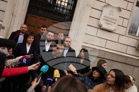 София (13 декември 2023) Общинските съветници от групата на Местна коалиция "БСП за България" дават брифинг пред сградата на Столична община. На снимката: председателят на БСП - София Иван Таков.
