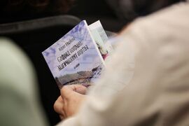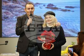 Бургас (14 декември 2023) Журналистиката Мария Кехайова представя новата си книга с разкази „Сафрид сопрано: Магическият портал“. Домакин на събитието е Регионална библиотека „Пейо К. Яворов“. На представянето присъства общинският съветник Веселин Пренеров (ляво)..
