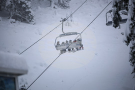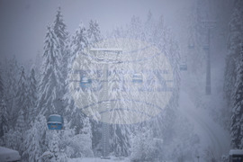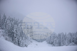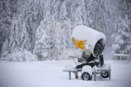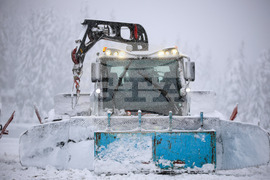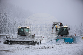 Банско (16 декември 2023) В Банско днес официално се дава началото на зимния ски сезон. Любители на зимните спортове се събират на пистите край „Бъндеришка поляна“ за първи спускания за сезона. На снимката: машини за обработка на ски писти.