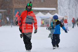 Банско (16 декември 2023) Легендарните скиори Дебора Компаньони и Марк Жирардели (на снимката) дават старт на ски сезона в Банско със спускане по писта „Томба“.