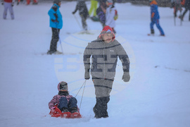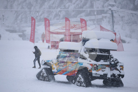 Банско (16 декември 2023) В Банско днес официално се дава началото на зимния ски сезон. Любители на зимните спортове се събират на пистите край „Бъндеришка поляна“ за първи спускания за сезона. На снимката: машина за обработка на ски писти.