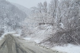 Село Клисура (16 декември 2023) По пътя Самоков - Дупница преди село Клисура има паднали клони и навалял сняг, като в този участък движението се осъществява в едната лента, видя репортер на БТА.
