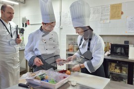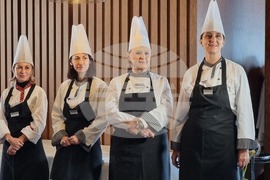 Габрово (17 декември 2023) В Габрово започна второто кулинарно състезание за непрофесионалисти „На върха на пламъка“. Проявата е посветена на 60-ата годишнина от откриването на Професионалната гимназия по туризъм „Пенчо Семов“ (ПГТ „Пенчо Семов“). В събитието участва заместник-министърът на образованието Мариета Георгиева (вляво).
