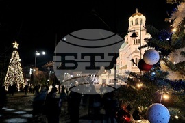 София (17 декември 2023) Коледно настроение, броени дни преди коледните и новогодишните празници. Централната част на столицата е с празнична украса и светлини. На снимката: патриаршеската катедрала "Свети Александър Невски".