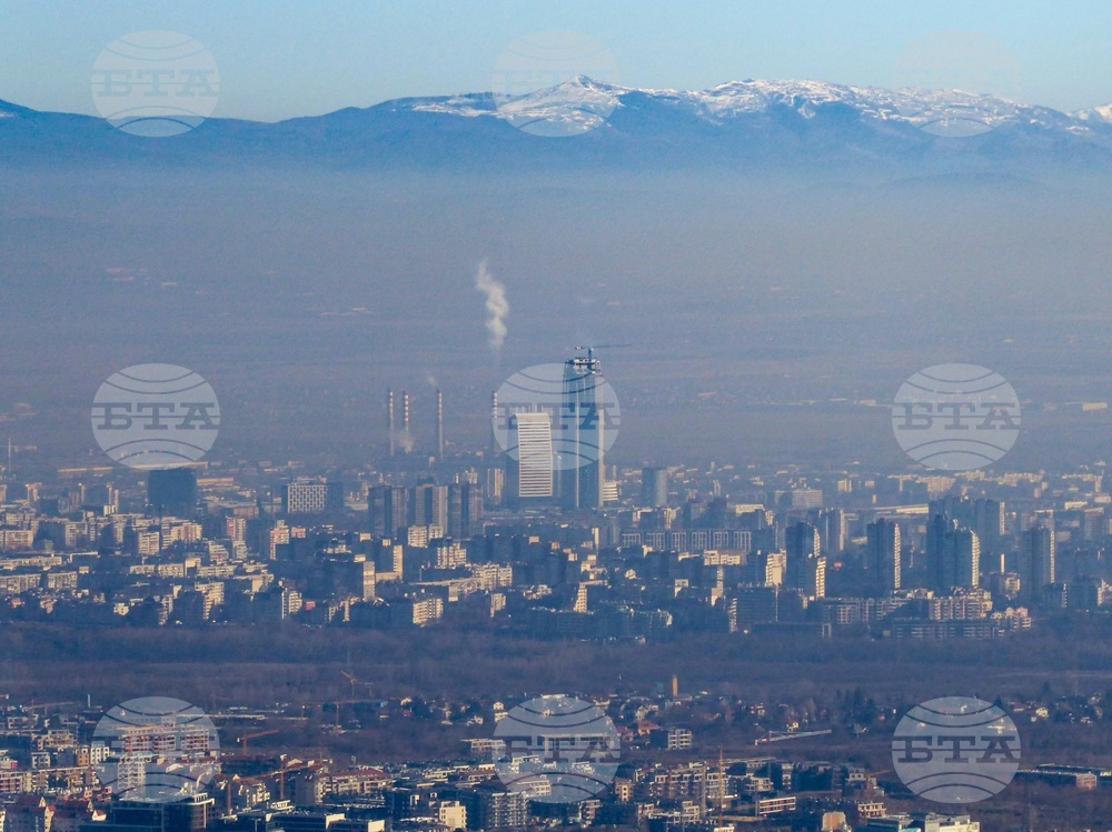 София (29 декември 2023) В топлия безветрен декемврийски ден, погледната от планината Витоша столицата е покрита с мъгла.