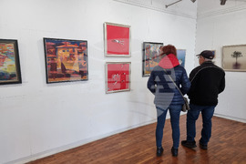 Бургас (6 януари 2024) В галерията на Дружество на бургаските художници се открива изложбата "Богоявление". За 25-та година Йордан Маринов, Йордан Петров и Йордан Ангелов показват съвместна изложба на общия си празник Йордановден. На снимката: художникът Йордан Ангелов и зам.-кметът по Култура на Община Бургас Диана Саватева.