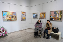 Бургас (6 януари 2024) Художничката Ивелина Иванова гостува на бургаската галерия "Неси". Изложбата е озаглавена "Дом" и включва 16 платна рисувани с маслени бои. На снимката: художничката Ивелина Иванова (ляво) и зам.-кметът по Култура на Община Бургас Диана Саватева (дясно).