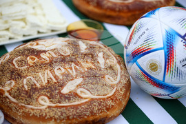 Благоевград (8 януари 2024) Отборът на Пирин (Благоевград) стартира подготовка за подновяването на шампионата в Първа лига на стадион "Христо Ботев" в областния град. Футболистите правят първа тренировка, а по традиция на терена се отслужва водосвет за здраве. На снимката: кметът на Община Благоевград Методи Байкушев (вляво) и старши треньорът на „Пирин“ Благоевград Иво Тренчев.