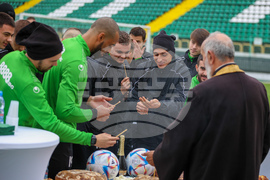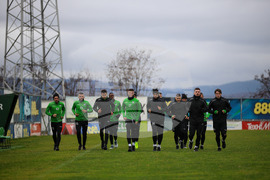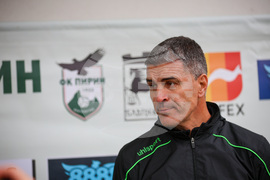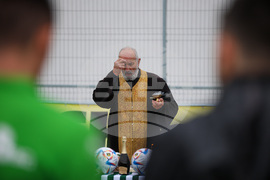 Благоевград (8 януари 2024) Отборът на Пирин (Благоевград) стартира подготовка за подновяването на шампионата в Първа лига на стадион "Христо Ботев" в областния град. Футболистите правят първа тренировка, а по традиция на терена се отслужва водосвет за здраве. На снимката: треньорът на вратарите на „Пирин“ Благоевград Мирослав Митев.