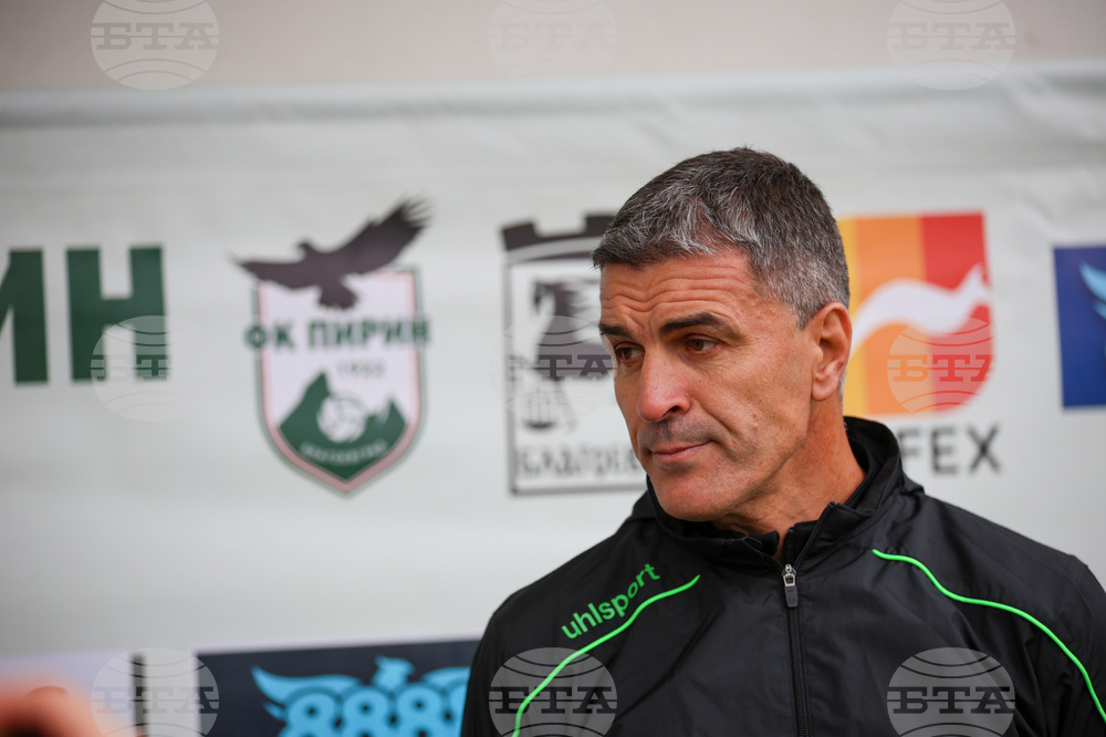 Благоевград (8 януари 2024) Отборът на Пирин (Благоевград) стартира подготовка за подновяването на шампионата в Първа лига на стадион "Христо Ботев" в областния град. Футболистите правят първа тренировка, а по традиция на терена се отслужва водосвет за здраве. На снимката: старши треньорът на „Пирин“ Благоевград Иво Тренчев.