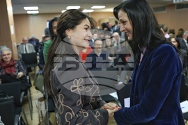 София (9 януари 2024) Конференция за началото на белгийското председателство на Съвета на Европейския съюз (ЕС) се организира днес в Дома на Европа. Белгия пое от 1 януари за 13-и път председателството на Съвета на ЕС. На снимката (от ляво надясно): зам.-председателят на НС Росица Кирова, заместник министър-председателят и министър на външните работи Мария Габриел.