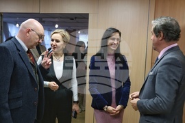 София (9 януари 2024) Конференция за началото на белгийското председателство на Съвета на Европейския съюз (ЕС) се организира днес в Дома на Европа. Белгия пое от 1 януари за 13-и път председателството на Съвета на ЕС. На снимката (от ляво надясно): ръководителят на фондацията „Конрад Аденауер“ в България Норберт Бекман-Диркес, президентът на "Пан Европа- България" Гергана Паси, заместник министър-председателят и министър на външните работи Мария Габриел и посланикът на Белгия Фредерик Мьорис.