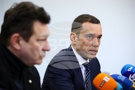 София (9 януари 2024) Кметът на София Васил Терзиев (дясно) и вр.и.д. директор на СПТО Николай Савов представят резултатите от одитния доклад на завода за отпадъци на София в сградата на Столичната община на ул. „Московска“ 33.