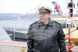 Варна (9 януари 2024) В морския град се провежда тържествено честване на 143 години от основаването на Висшето военноморско училище „Никола Й. Вапцаров“. На морска гара се състоя церемония по присвояване на име на моторен катер от състава на ВВМУ. На снимката: началникът на военноморското училище флотилен адмирал проф. Боян Медникаров.