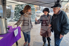 Велико Търново (10 януари 2024) В днешното мразовито утро десетки великотърновци получават чаша топъл чай в центъра на града. Много хора, вървейки към работните си места, или правейки редовните си сутрешни разходки, се възпозват от чашата билков чай. Инициативата е Дирекция "Социални дейности" към Община Велико Търново.