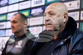 София (10 януари 2024) Треньорът на ФК Славия, Златомир Загорчич (ляво) дава пресконференция на стадион “Александър Шаламанов”. На снимката: президентът на Славия Венцеслав Стефанов (дясно).