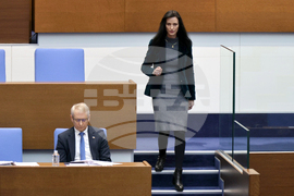 София (12 януари 2024)Заседанието на парламента започва с блицконтрол, в който според правилника на Народното събрание участват премиерът и вицепремиерът. На снимката: заместник министър-председателят и министър на външните работи Мария Габриел.