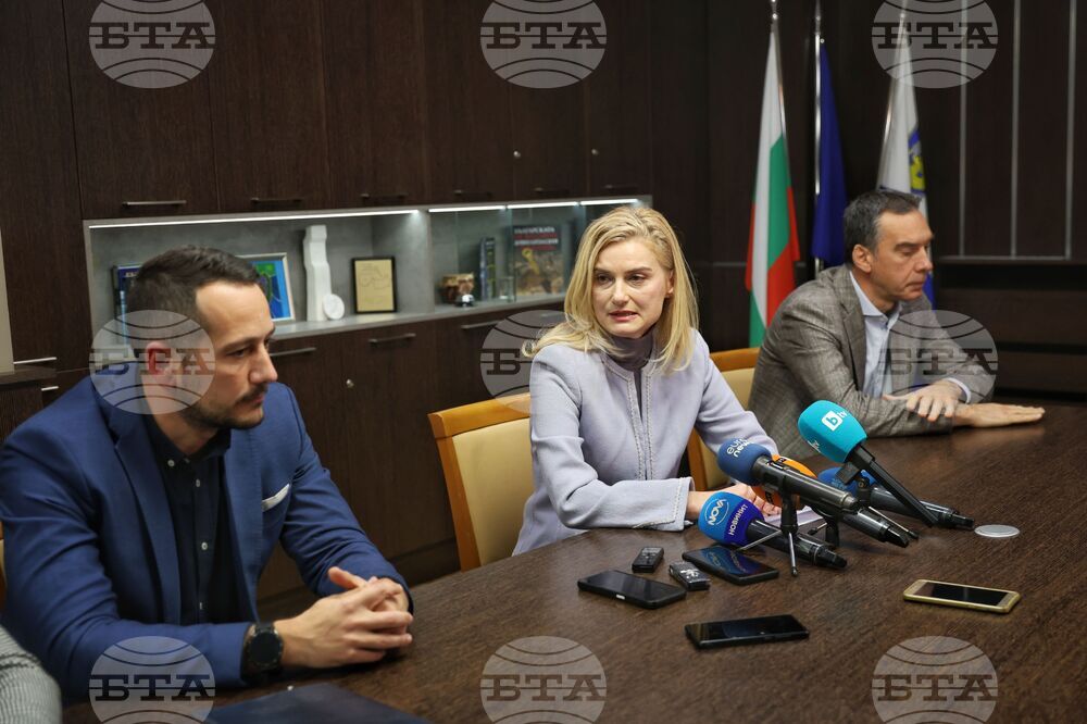 Бургас (12 януари 2023) Министърът на туризма Зарица Динкова дава брифинг в сградата на Община Бургас. Тя коментира старта на „Програма за финансиране на маркетингови дейности на туристически услуги в Черноморските общини в Република България“ и подготовката на летен сезон 2024г. На снимката (от ляво надясно): зам.-кмет по Туризъм и спорт на Община Бургас Манол Тодоров, министърът на туризма Зарица Динкова и кметът на Община Бургас Димитър Николов.
