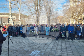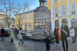 Габрово (12 януари 2024) Днес в Габрово се отбелязват 189 години от създаването на Националната Априловска гимназия (НАГ). Тържествата започнаха с игра на възпитаниците на гимназията - „Шифърът на Априлов“. В 12:00 часа с празничен ритуал пред паметника на патрона Васил Априлов бяха поднесени цветя и венци от официалните гости на събитието. Учениците на НАГ се срещнаха и с генералния директор на Българската телеграфна агенция (БТА) Кирил Вълчев. На снимката: директорът на гимназията Елвира Христова (в средата).