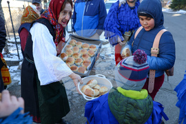 Големо Бучино (14 януари 2024) Празникът Сурва продължава в Пернишко с обикаляне на групи по домовете.
