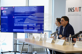 София (15 януари 2024) Министър-председателят акад. Николай Денков (вдясно) присъства на представяне на най-новата разработка в областта на изкуствения интелект на Изследователския институт INSAIT към Софийския университет "Св. Климент Охридски". Събитието се състоя в сградата на INSAIT. В представянето участваха още проф. Мартин Вечев (в средата), научен директор на INSAIT и инж. Борислав Петров (вляво), изпълнителен директор на INSAIT.