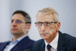 София (15 януари 2024) Министър-председателят акад. Николай Денков (вляво) присъства на представяне на най-новата разработка в областта на изкуствения интелект на Изследователския институт INSAIT към Софийския университет "Св. Климент Охридски". В представянето участваха и министърът на образованието Галин Цоков (вдясно).