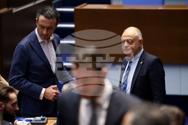 София (19 януари 2024) Парламентът провежда редовно заседание в сградата на Народното събрание. На снимката: депутатът от ПП-ДБ Ивайло Мирчев и съпредседателят на ПП-ДБ Христо Иванов (дясно).